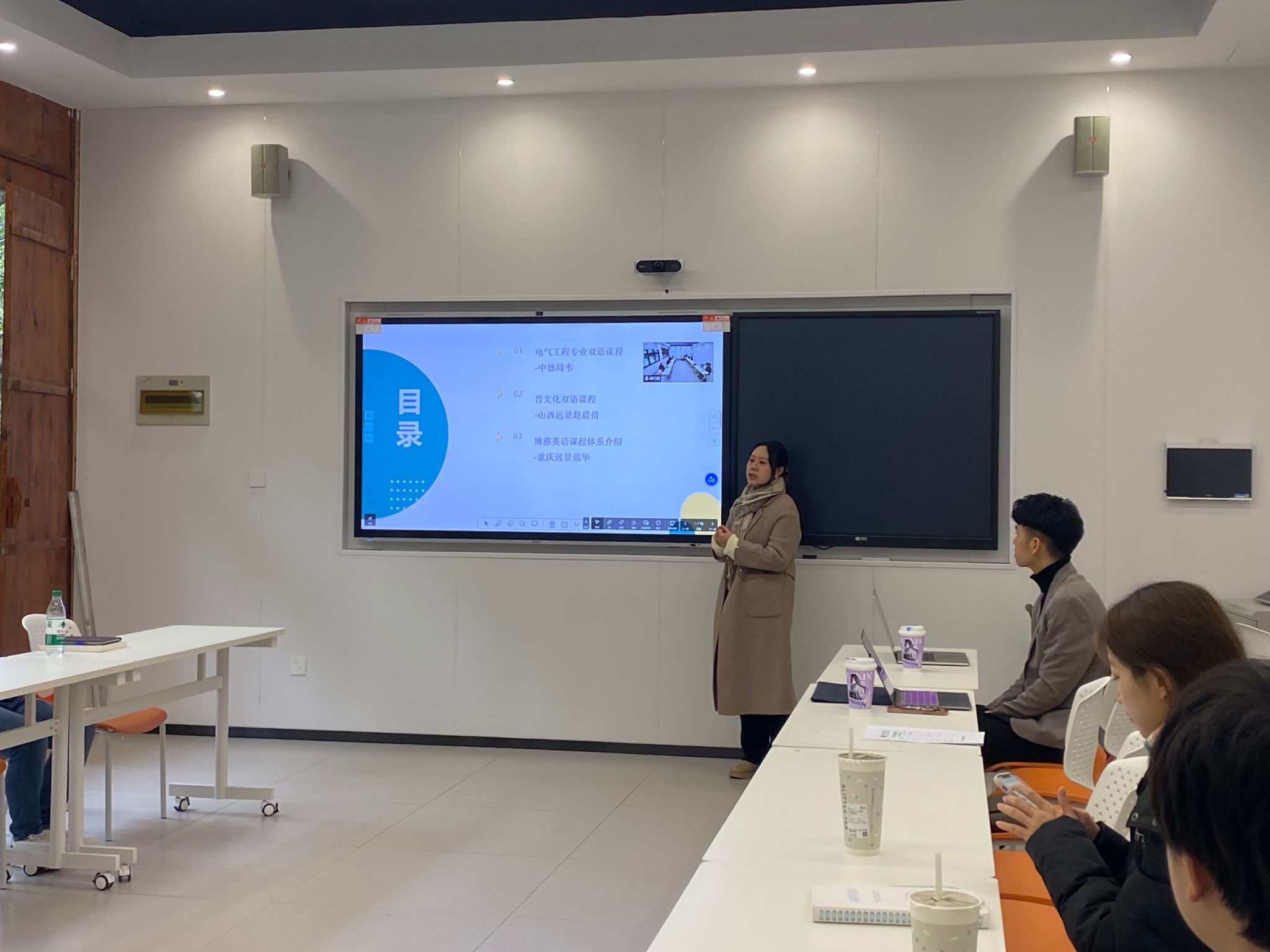 在全球化的浪潮中,双语教学已成为高等教育国际化的重要途径。为了深化双语课程的内涵,促进多学科融合,2024年12月13日下午,远景学院在菩提电影室1举办了一场以“双语课程与国际交流”为主题的经验分享研讨会。此次活动汇聚了远景学院、山西晋中学院以及德国工程学院的老师,共同探讨双语课程建设的经验和教学方法,旨在激发新的教学灵感和学术碰撞。