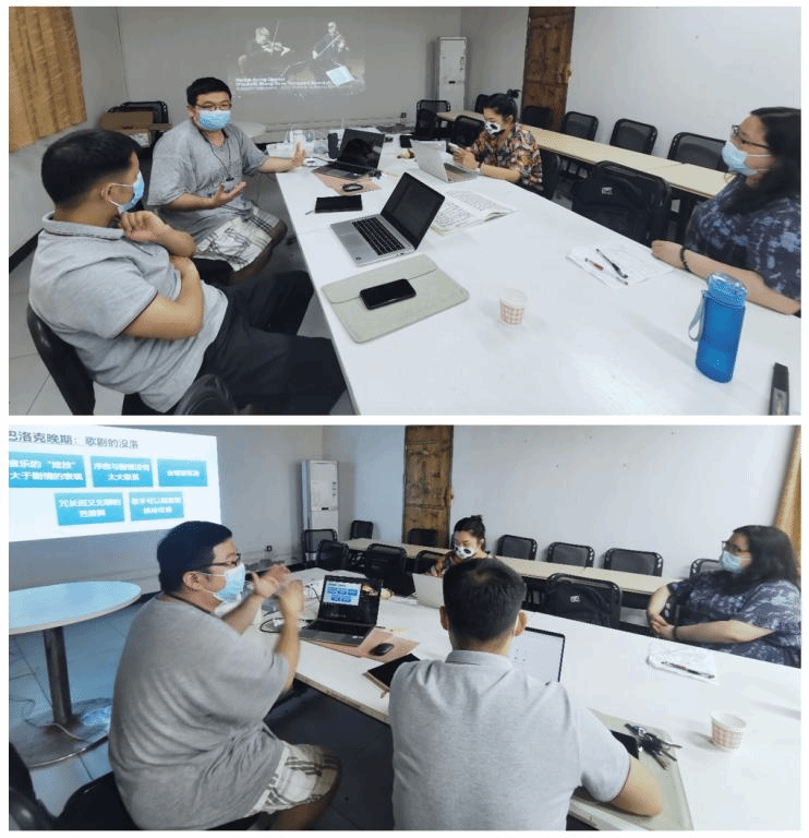 陈榭非老师选取了《古典音乐入门》课程中的巴赫、莫扎特、贝多芬的相关章节进行了说课,提出了教学设计上的困境,希望通过团队力量,通过跨学科合作来找寻一些新思路。老师们积极参与到研讨中,分别对每部分内容提出了自己的见解,为陈老师的教学内容选取和教学设计打开一扇窗。