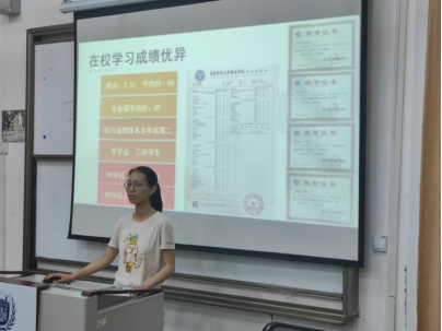 随后,2017级计算机科学专业张晓梅同学重点介绍了自己在各级别的数学建模竞赛中挑战自己,逐渐成长并获得显著成果的历程,同时,作为学生干部,她也分享了自己组织团队学习,带动身边的同学一起进步,并强调了营造互助学习氛围的重要性。张晓梅同学不仅是学习方面的达人,也在完满活动方面获得了省部级奖项和荣誉,是完满教育与学术融合教育模式下典型榜样。她还分享了自己的学习方法,以及在商科教育的影响下,决心跨专业谋求未来发展的计划。最后,2017级计算机科学专业的杜沁云同学重点分享了自己学习编程,从零起步到多次获得国家级、省部级竞赛奖项,取得计算机软件著作、在国外期刊发表论文的不懈努力过程,并鼓励同学们多参加学科竞赛,在参与的过程中学习和提升自己。她认为成长中的困难和艰辛都是暂时的,学习不能没有成功的欲望,需要有胜负心,要对自己的表现不满足,这样才能够不断实现自我超越。