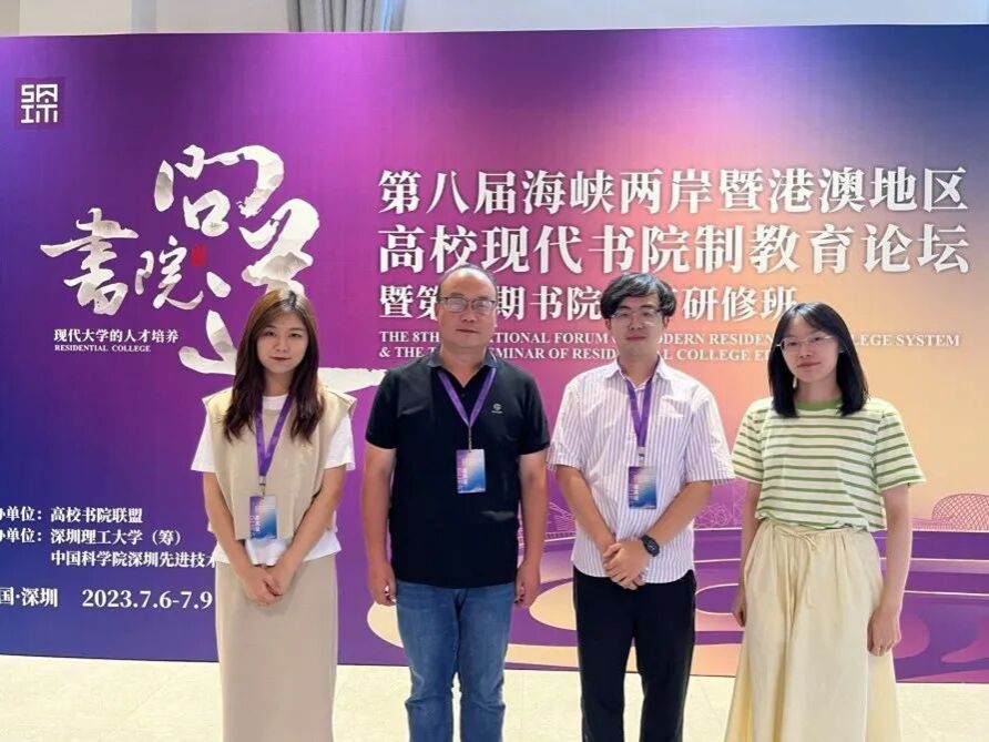 7月6日至7月9日,由高校书院联盟主办、深圳理工大学(筹)、中国科学院深圳先进技术研究院承办的第八届海峡两岸暨港澳地区高校现代书院制教育论坛在深理工明珠校区成功举办。为促进书院制教育经验交流,加强学校书院与各高校书院的交流合作,同时展现我校精英式小型文理书院实践探索成果,创新远景书院建设思路,提升建设能力,7月6日在学校书院部的组织和带领下,来自合川、綦江远景书院的强杨、路梦瑶、陈曦、邓锦莹4位老师一同参加了此次论坛的交流和参访学习。