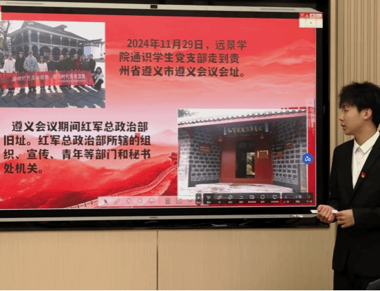 为深入学习贯彻习近平新时代中国特色社会主义思想,引导广大团员青年传承红色基因,勇担时代使命,进一步加强共青团组织建设,增强团组织的凝聚力和战斗力,远景学院于2024年12月18日12:30在菩提书院多功能教室三举办了“铭记历史沧桑,展望今朝辉煌”——远景学院“最青春”系列主题微团课第28期。本次课程有幸邀请到了远景学院2024级1-3支部班导师熊毅豪,为我们深入讲解遵义会议的历史意义和精神内涵。
