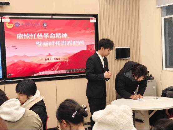 活动伊始,熊毅豪同学巧妙地以一道公务员考试题目作为开场游戏,以此启发同学们“我们要打开自我思维,不要局限于某一方面”,这一举措不仅激发了大家对红色革命精神学习的兴趣,也为后续的深入学习打下了良好的基础。