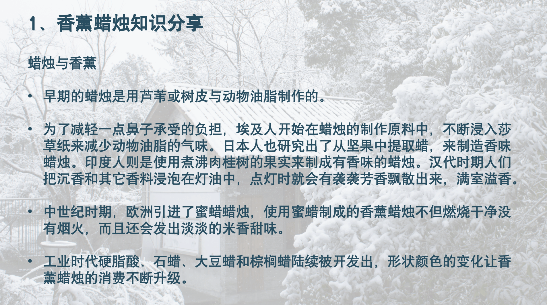 活动以朱姝霖老师的背景知识介绍开场,她引领着同学们穿梭于香薰蜡烛的悠久历史长廊,从公元前1500年埃及人以芦荟、没药、蜂蜜调和香气疗愈身心的古老智慧,到芳香疗法在防腐艺术中的巧妙运用,再到日本香道与花道、茶道的并蒂花开,以及我国香篆计时的独特韵味,每一幕都仿佛穿越时空,让香薰文化在同学们心中悄然生根。