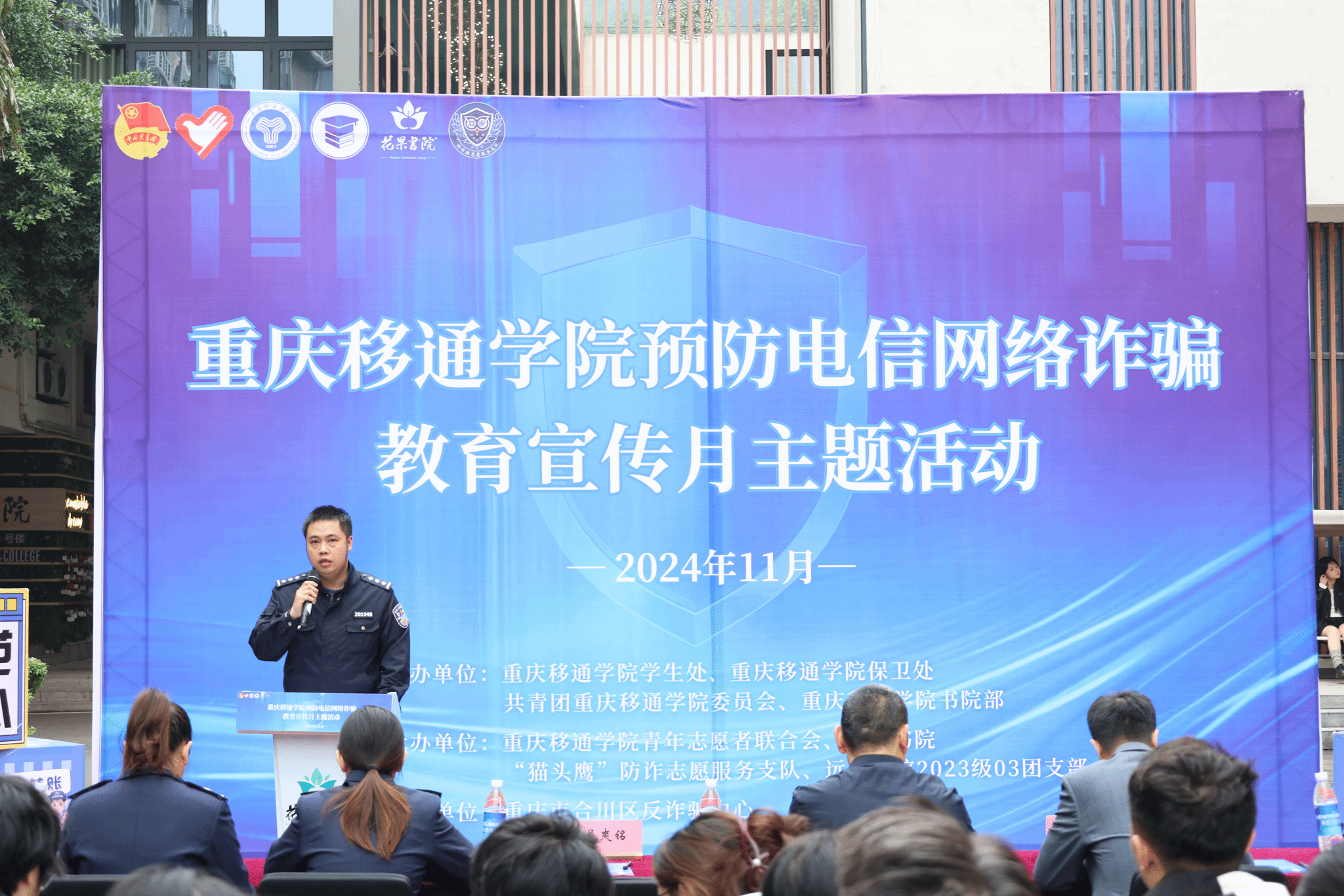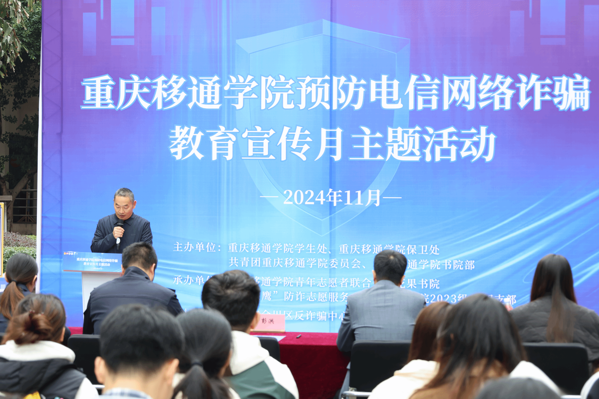 自2021年12月我校与合川区反诈骗中心建立重庆移通学院预防电信网络诈骗教育实践基地以来,合川区反诈骗中心大力支持对我校反诈工作并给予专业指导和帮助,现场,反诈骗中心吴爽铭警官向师们深入剖析当下诈骗手段的新变化与新趋势,同时满怀期许地表示,期望借此次防诈骗宣传月活动,筑牢校警协作的坚固基石,开拓警校携手的崭新天地。