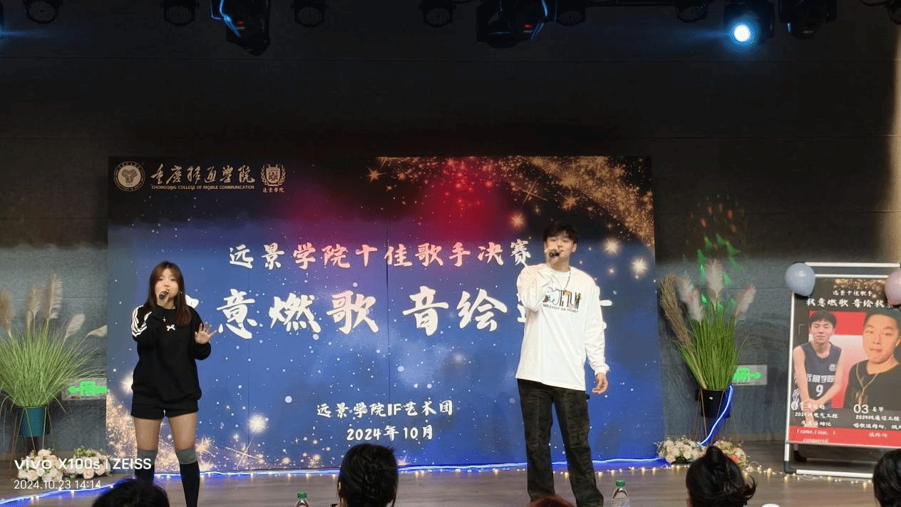 远景学院第十二届“秋意燃歌,音绘远景”十佳歌手大赛在六度空间·星河音乐厅盛大举行!大赛完美落幕,师生们共同沉浸在这场音乐的狂欢之中。 本次比赛莅临现场的评委嘉宾有钓鱼城科幻学院黄丽萍、艺术教育中心指导老师罗宇宏、特邀嘉宾王林林、远景学院音乐剧郭杨、远景学院学工副院长李军、艺术版块指导老师王诗颖、书院发展导师路梦瑶、十大歌手大赛冠军学生评委杜浩鲲以及各年级辅导员老师们,他们的到来为现场增添了别样的风采,也展现了远景学院对此次活动的大力支持。