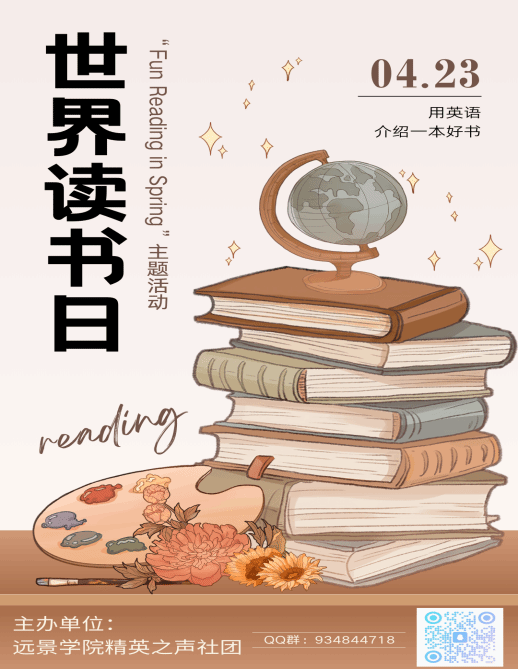 四月阳春布德泽,最是书香能致远。阅读能丰盈精神世界,而语言是连接人与人之间精神的途径,为此在4月23日第29个“世界读书日”来临之际,远景学院精英之声特此举办“Fun Reading in Spring”主题活动。