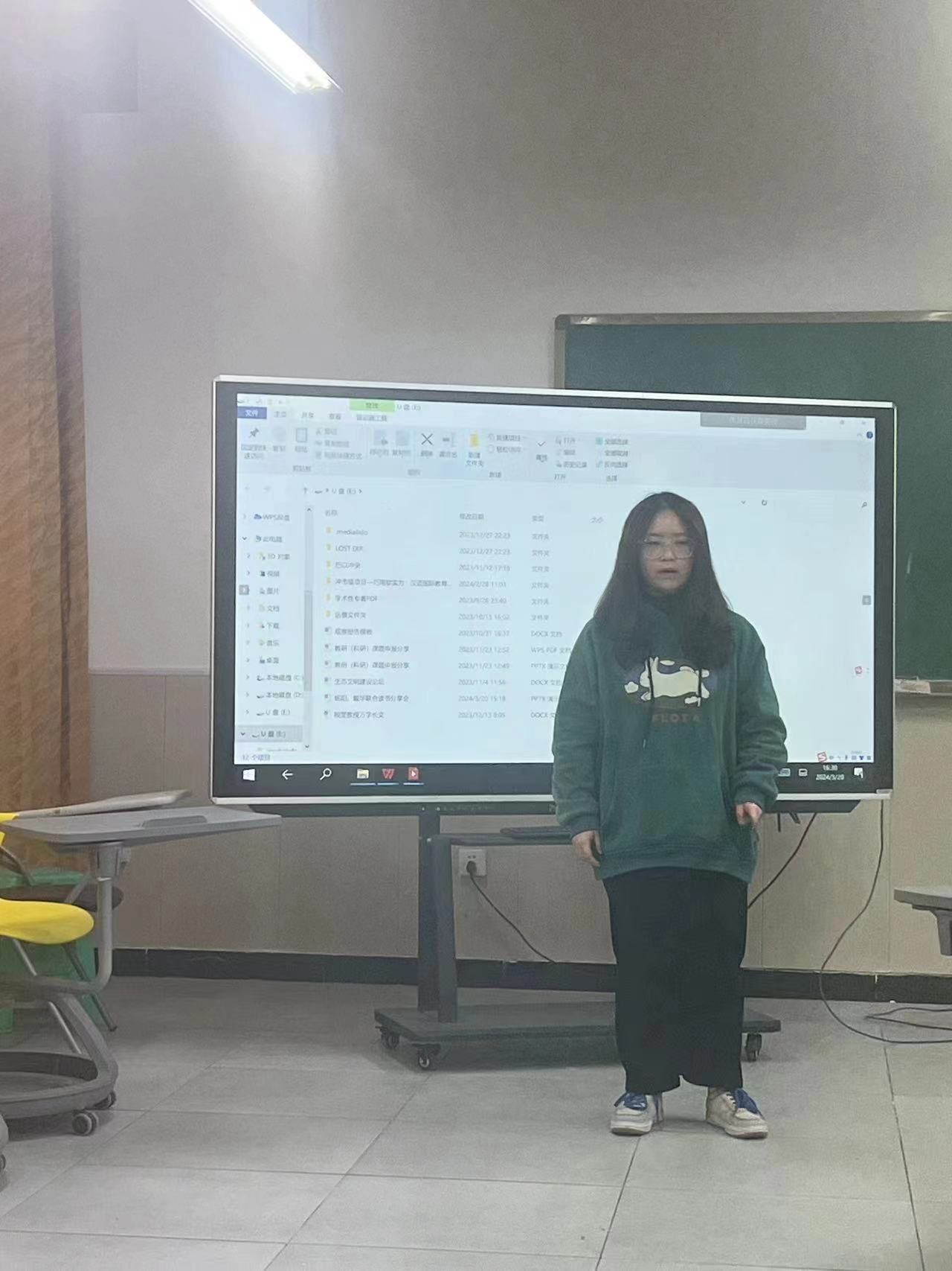 第三位分享书籍的是2023级的黄雯同学,她分享的是史铁生的《病隙碎笔》,她不仅分享了史铁生在患病之后多么顽强、多么有毅力坚持下去的故事,还结合自己的往事去真正感同身受了史铁生先生的情感。我想,阅读最大的魅力就是在某时某刻你顿悟了当初作者所表达的含义,因为在那时你才真正地走进了作者,走进了这本书。