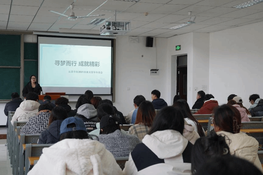 为进一步深化2025届毕业生的就业指导工作,助力学生全面掌握当前的就业趋势及政策环境,远景学院2021级于3月6日下午3时,在9210教室举办了一场以“寻梦而行,成就精彩就业指导”为主题的年级交流会。本次年级会邀请了学校就业与创业指导中心主任助理杨德龙老师、学工副院长李军以及2020级辅导员付海明老师,旨在让学生了解目前就业形势、政策相关事宜。此次会议的举办,体现了我院对毕业生未来职业发展的高度关注与支持,以期学生们能在职业道路上稳步前行,成就精彩人生。