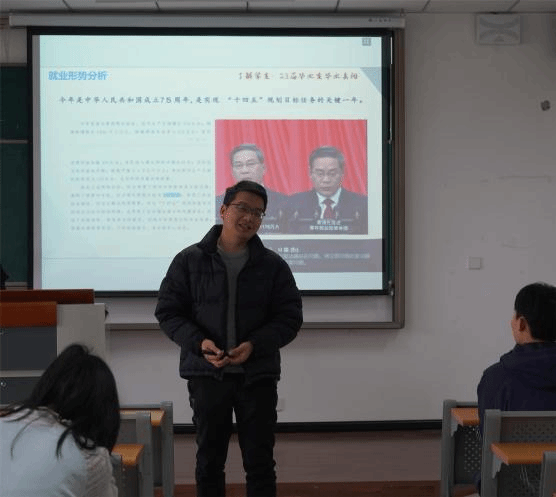 然后,杨老师针对有意参加公务员考试的同学们澄清了关于应届生身份的误解,并介绍了我校新疆西藏“内招生”政策,为同学们提供了另一种就业选择。杨老师呼吁大家积极参与各类比赛竞赛,丰富个人简历,积累实践经验,在激烈的竞争中锻造出个人独特优势,为找到心仪工作打下坚实基础。