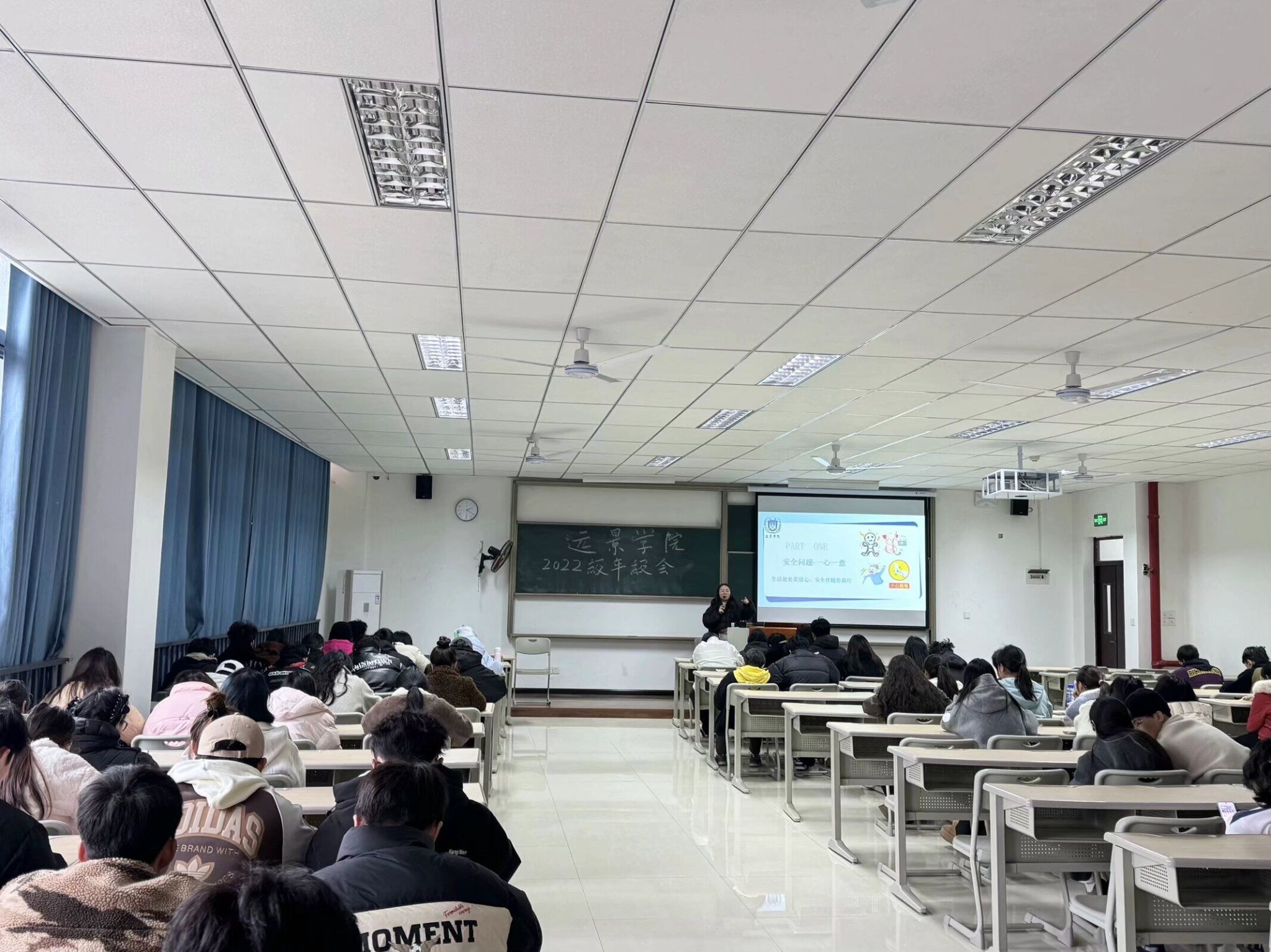 2022级于2月28日下午召开本年级的开学第一课。“课堂”上针对安全稳定工作、本学期学风建设、学业规划、生涯规划、学科竞赛等内容做了分享、引导和解读。安全无小事,大到电信防诈骗、交通出行、食品安全,小到体育运动安全。给同学们解读安全常识的时候,无一不在体现着学校、学院对学生的关心、爱护之情。2022级本学期开始,将继续重点关注学风建设,引导同学们在学业上更上一层楼,同时也会鼓励同学们积极参加学科竞赛,在个人能力上突破自我和丰富自我。