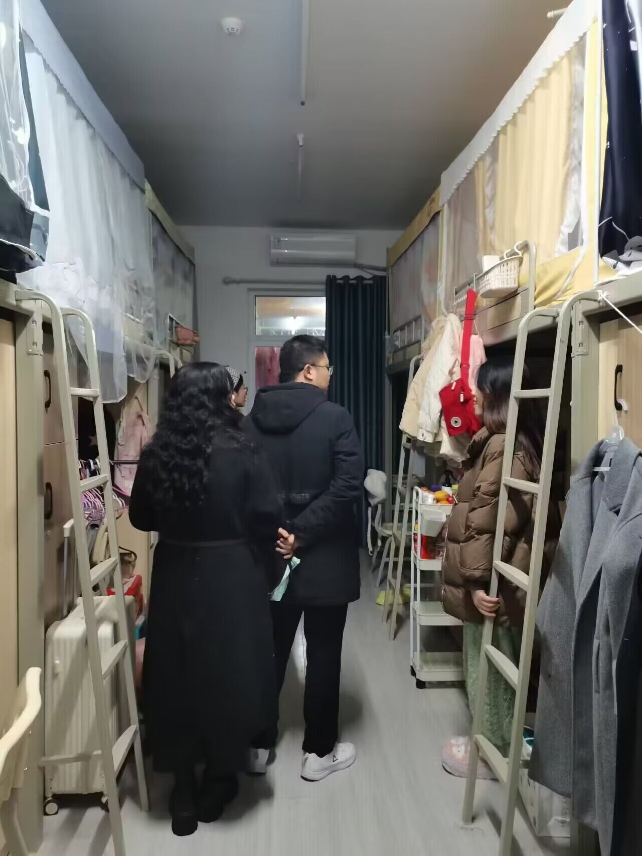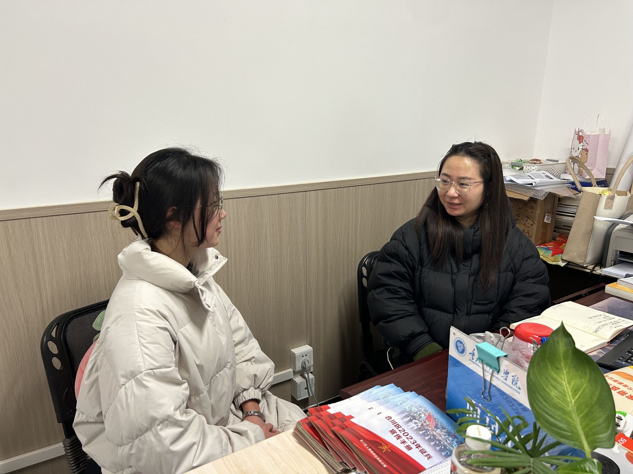 2月25日,双校区学工系统走访了远景书院全体寝室,深入学生宿舍、进一步了解学生安全返校、学习和生活等情况,关注并掌握学生思想动向。双院区的学生纷纷表示,书院极具仪式感的氛围让大家感到温暖,就像自己的另一个家。深入寝室交流的过程中,学工系统对不同年级的学生分别给出了相关建议,提醒綦江校区即将进行军训的大一同学们,注意保暖防寒工作,注意身体健康;倡导大二的同学,铆足干劲谱新篇,学业要进步,新年也要指定自己新的目标;关注大三的同学们学业规划、职业生涯规划。殷殷嘱咐,关爱暖心,小小空间满满温暖,处处体现着学院对同学们的关心与爱护。