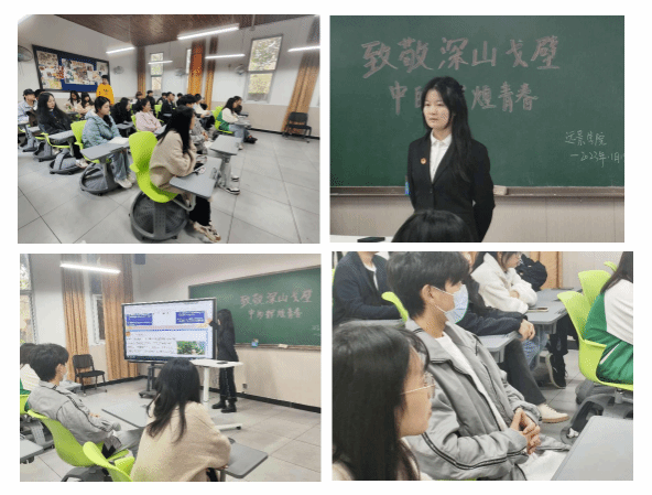 为了深入贯彻习近平总书记对新时代青年不负时代重托的殷切寄语,弘扬脱贫攻坚精神,助力乡村振兴,加强新时代青年的责任感和使命感,激发强国有我的青春激情,引导学生做一名优秀的传承者。2023年11月15日下午13点,远景学院在菩提书院普通教室五开展了以“致敬深山戈壁中的辉煌青春”为主题的微团课。本期微团课邀请到远景学院2022级02团支部团支书吕明兰担任主讲人,为2023级各支部代表做此次分享。