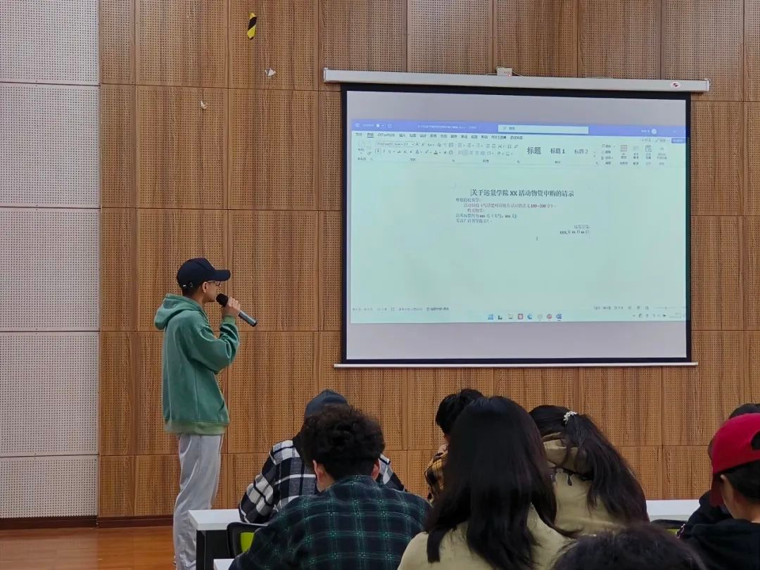 周嘉宇主席以excel表格加图片的形式,讲解了活动物资申购请示、活动物资购买表格、物资购买付款截图,物资购买发票,以灵活多变的形式,让各部门负责人更加直观的学习如何进行活动经费的申报,对大家以后能够顺利组织活动打下坚实的基础。