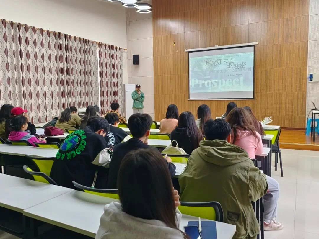 本次培训邀请了主席周嘉宇作为主讲人,以“聚光灯下的秘密”为主题,于 11 月 10 日中午 12 点 40 分于天渠111报告厅对各学生干部展开培训。