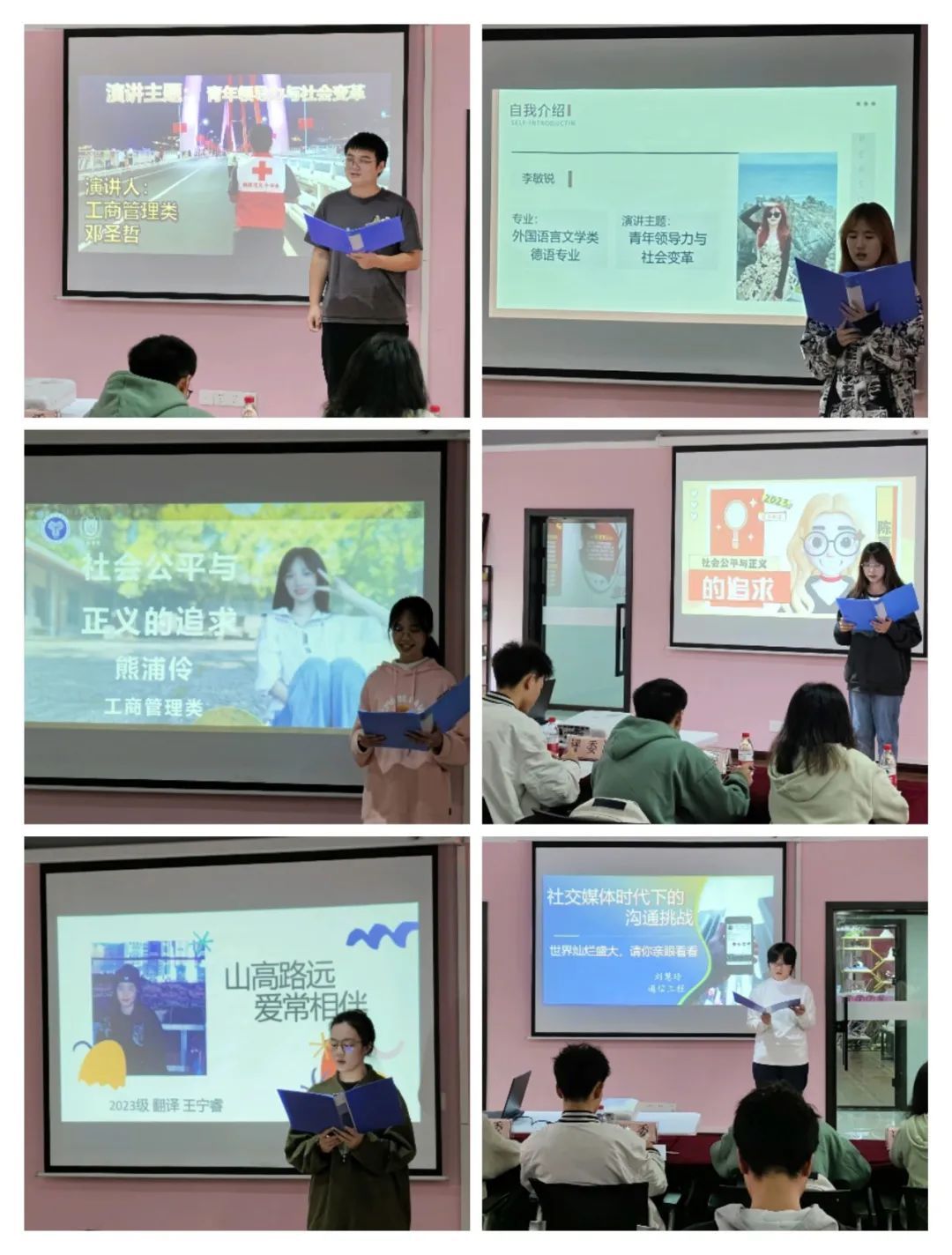 此次复赛我们请到了四位主席和两位优秀学长担任评委。在复赛中,选手们分别以“社会公平与正义的追求”“社交媒体时代下的沟通挑战”“爱与友谊的力量”“青年领导力与社会变革”“社会责任与公益事业”五个主题进行演讲。在这个过程中让同学们更加深刻地认识到责任、正义、担当等优秀品质。