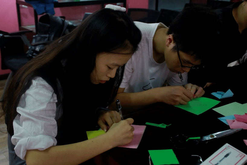 接下来,同学们把自己的短期目标和长期目标写下来,装在信封里,交给老师,以便于按时督促其成长。同学们小心翼翼地折叠信封,拿起沉甸甸的笔,写下自己的心愿并装在信封里。