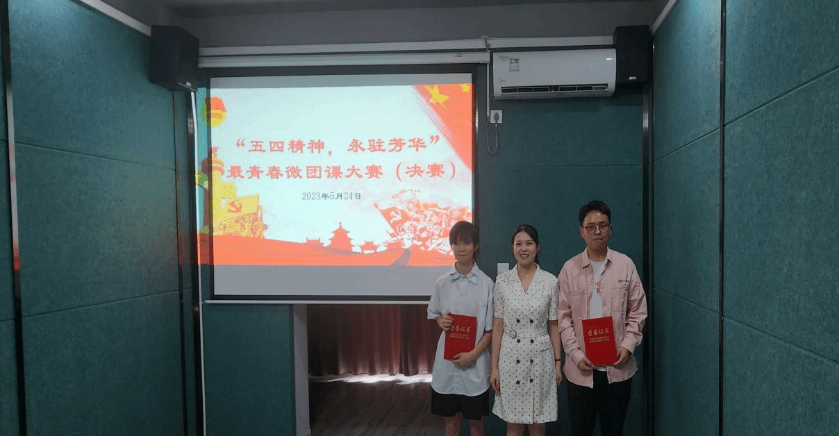 五四青年品牌月是为了弘扬以爱国主义为核心的五四精神,并展现共青团员和青年学生朝气蓬勃的青春面貌,焕发青春绚丽光彩而设立的一系列活动。它旨在让广大青年将青春奋斗融入时代主题,通过担当中的历练和尽责中的成长,让青春在广阔天地中绽放。我院于2023年5月24日下午15:00至17:00在花果1408放映室组织了五四青年品牌月系列子活动——"五四精神,永驻芳华"最青春微团课大赛。这次大赛很荣幸地邀请到了马克思主义学院的唐菊相、毕毓璟、袁鑫三位老师作为决赛评委。