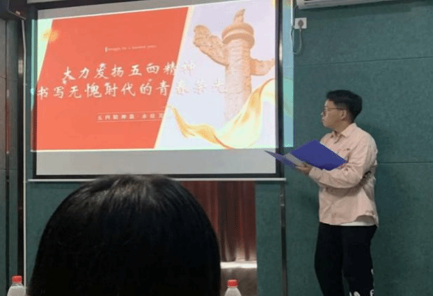 首先,主持人彭亚峰进行赛前宣讲,深刻阐释了五四精神的时代价值,指出五四精神代代相传,鼓励同学们学习五四精神,锤炼个人本领,增强品格毅力,勇于奉献,砥砺奋斗,矢志不渝。并宣布本次“五四精神,永驻芳华”最青春微团课大赛(决赛)正式拉开序幕。
