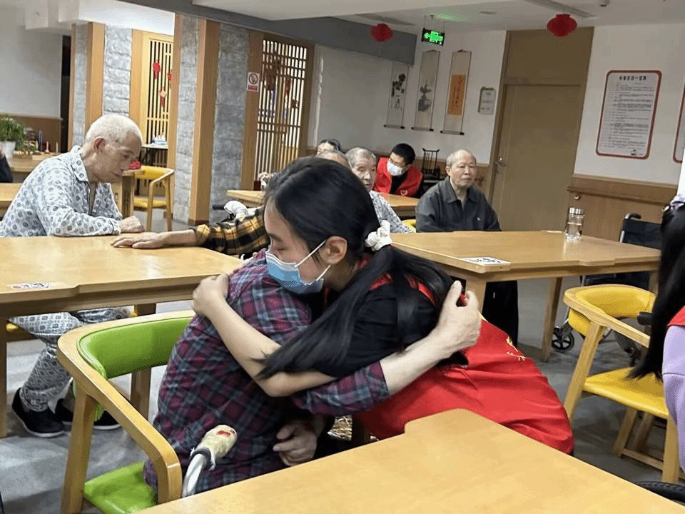 欢乐的时间总是过得很快,活动接近尾声,志愿者依次与爷爷奶奶拥抱和爷爷奶奶告别。