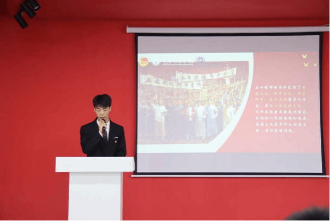 五四精神百年传承,深刻影响了的当代青年。文宇轩同学首先介绍了五四运动的精神内涵,“忧国忧民、热爱祖国、积极创新、探索科学”进一步强化同学们的理解;并引用孙中山先生的话语,强调了爱国是新时代中国青年应该具备的最基本要求。爱国,是人世间最深层最持久的情感,对于新时代中国青年来说,热爱祖国是立身之本、成才之基。