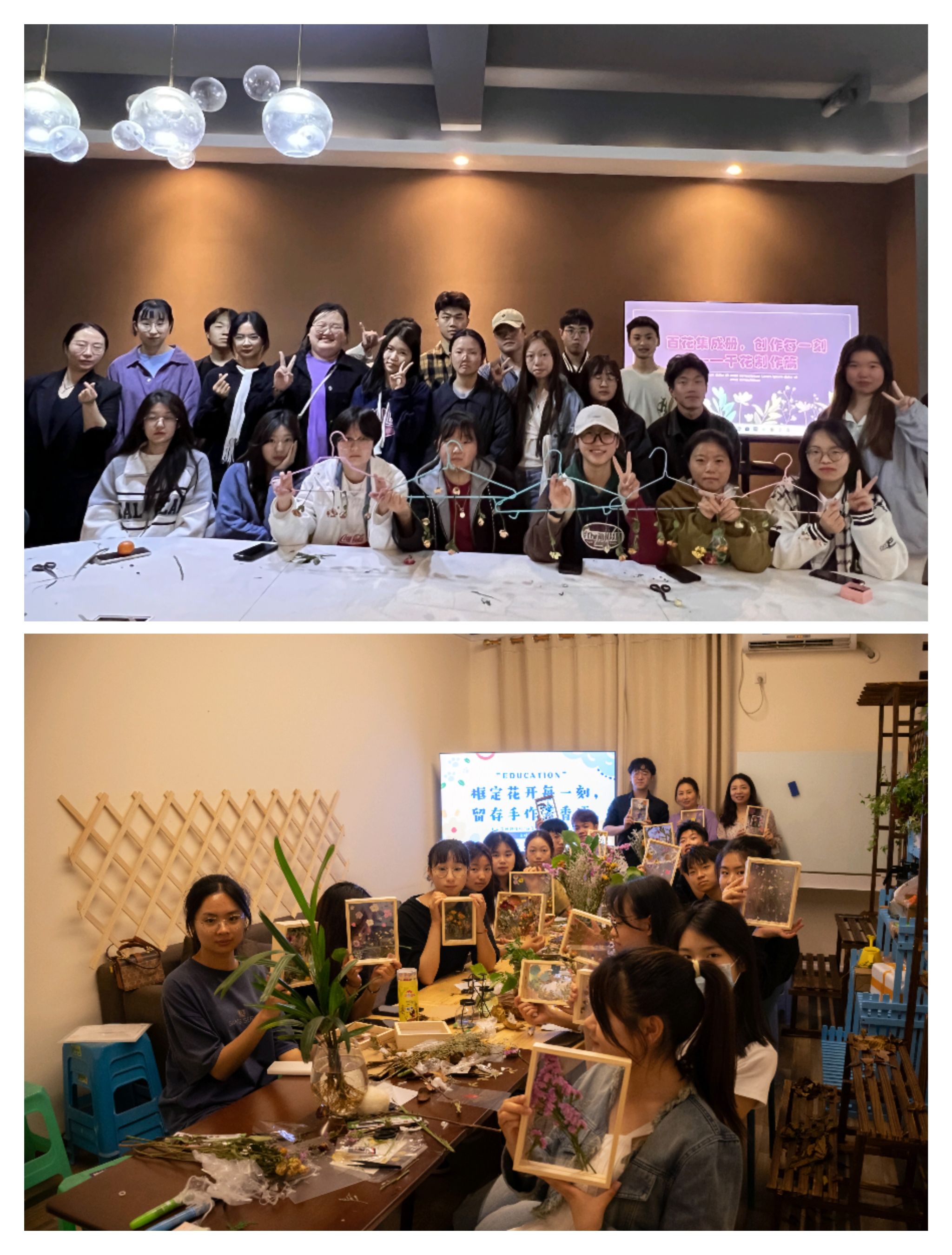 生活的花朵只有付出了劳动才会绽开。远景学院2022级04团支部的同学们与此次活动指导老师陈春彦老师、谭星老师以及向小雪老师一起在远景楼113进行游戏竞答、干花相框DIY、书签制作、环保画等系列活动。其中最精彩的莫过于“飞花令”游戏环节,从“唯有牡丹真国色,花开时节动京城”的美艳明媚到“小楼一夜听春雨,深巷明朝卖杏花”的唯美春光,从“江流宛转绕芳甸,月照花林皆似霰”的婉转牵缠到“停车坐爱枫林晚,霜叶红于二月花”的如火如荼。可以看出同学们诗词底蕴之深厚,由于比赛过于激烈,一直难分胜负,最后通过加分赛,评选出得分最高的三位同学,并荣获奖品。