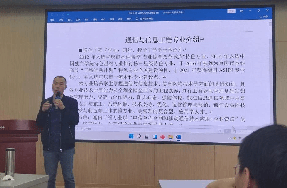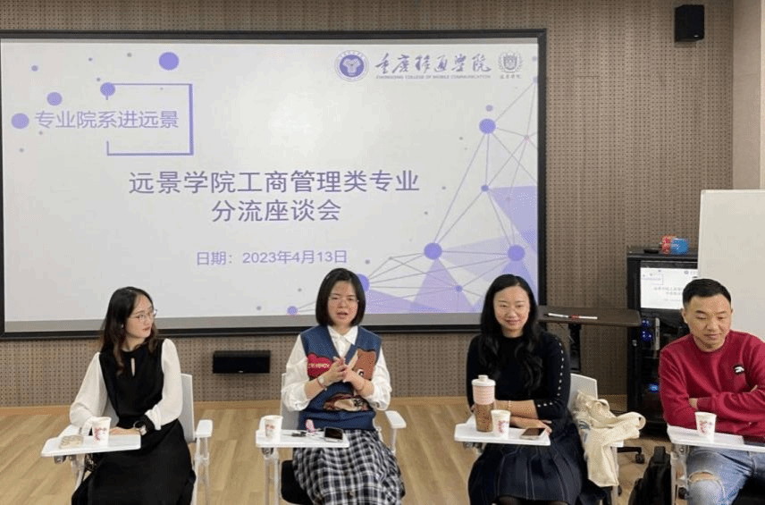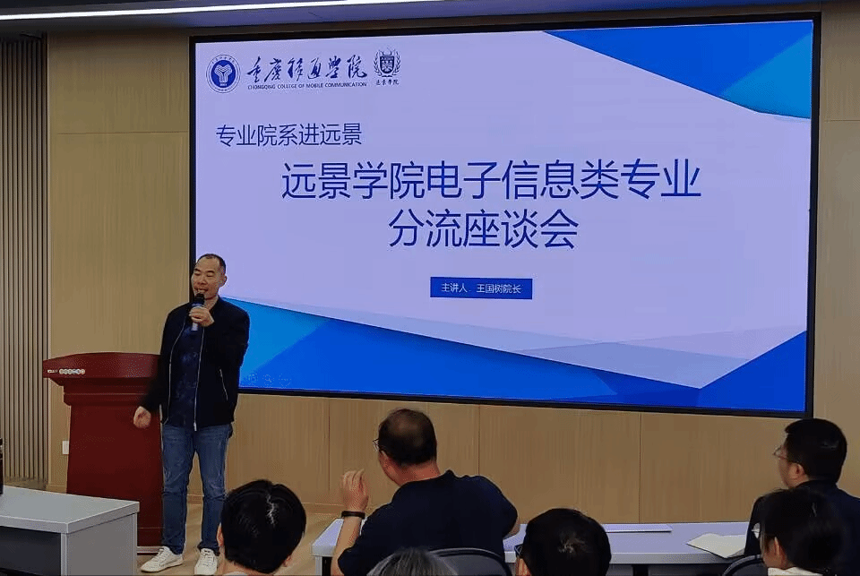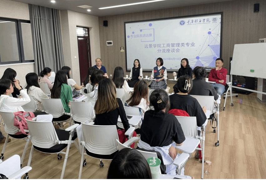 为做好学生转专业及专业分流工作,使同学们更加深入了解所学专业内涵,明确学习目标与发展方向,远景学院于4月13日、14日分别在302电影教室、智者楼304智者讲堂开展“专业院系进远景”活动,通信与信息工程学院王国树副院长、淬炼·国际商学院教研室主任杜嘉、教师代表尹欣、周晓蝶、陈冰川应邀分享,活动由教学副院长强杨主持,远景学院工商管理类、电子信息类专业全体学生参加。