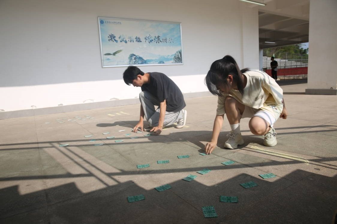 在第四个项目中,被分成三组的青马班学员们需要在自己那个小组将打乱翻转的卡片翻正后,按照顺序依次排列,速度最快的那一组则获得胜利。这个团队游戏不仅促进了同学之间的交流协作,也考验着同学们信息整合的能力,在不断的交流与互动中,大家也对彼此有了一个更深的了解,每个团队对胜利的渴望以强烈的凝聚力展现的淋漓尽致。