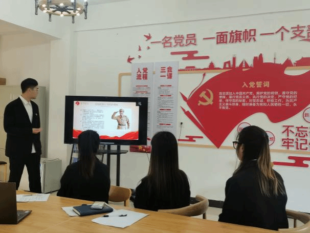 接着,主讲人向大家放映了时代榜样“张富清”老英雄的先进事迹,大家认真观看学习了这位革命英雄的事迹和精神,并励志成为一名像他那样不为名利,敢于担当的优秀党员。 在接下来现场互动环节中,主讲人肖林博向现场所有人提出两个有趣的问题,“你认为商人的初心是什么?有钱的商人都是不忘初心的商人吗?”陈欣雨、段越等学生党员分别作出精彩回答,随后主讲人也给出了自己的见解,他表示商人以赚钱为初心本身无可厚非,但前提是必须能抵御住诱惑,在法律允许范围内赚到钱才算是不忘初心,莫赚“黑心钱”。