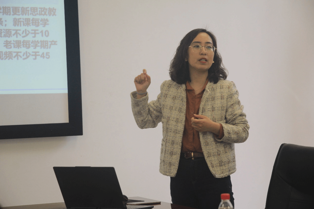 刘玲玲老师分享了打造省级一流课程的探索经历,她谈到《幸福课》在教师资源和教育教学经验积累等方面相对不足,课程建设任重道远。但本学期教研团队的教学工作开展将以工作室成立为基点构建跨学科教育教学团队,从修订新教学大纲、授课内容更新调整、构建并出版符合本门课程的专业教材三个方面进行逐步推进。在师资力量上,既有社会实践又工作经验的老师协调校内外资源共同构建本门学科的资源库,最终达到课程通识的效果。幸福课教研团队的构想已经相对完善,实践也将会一步步落实。