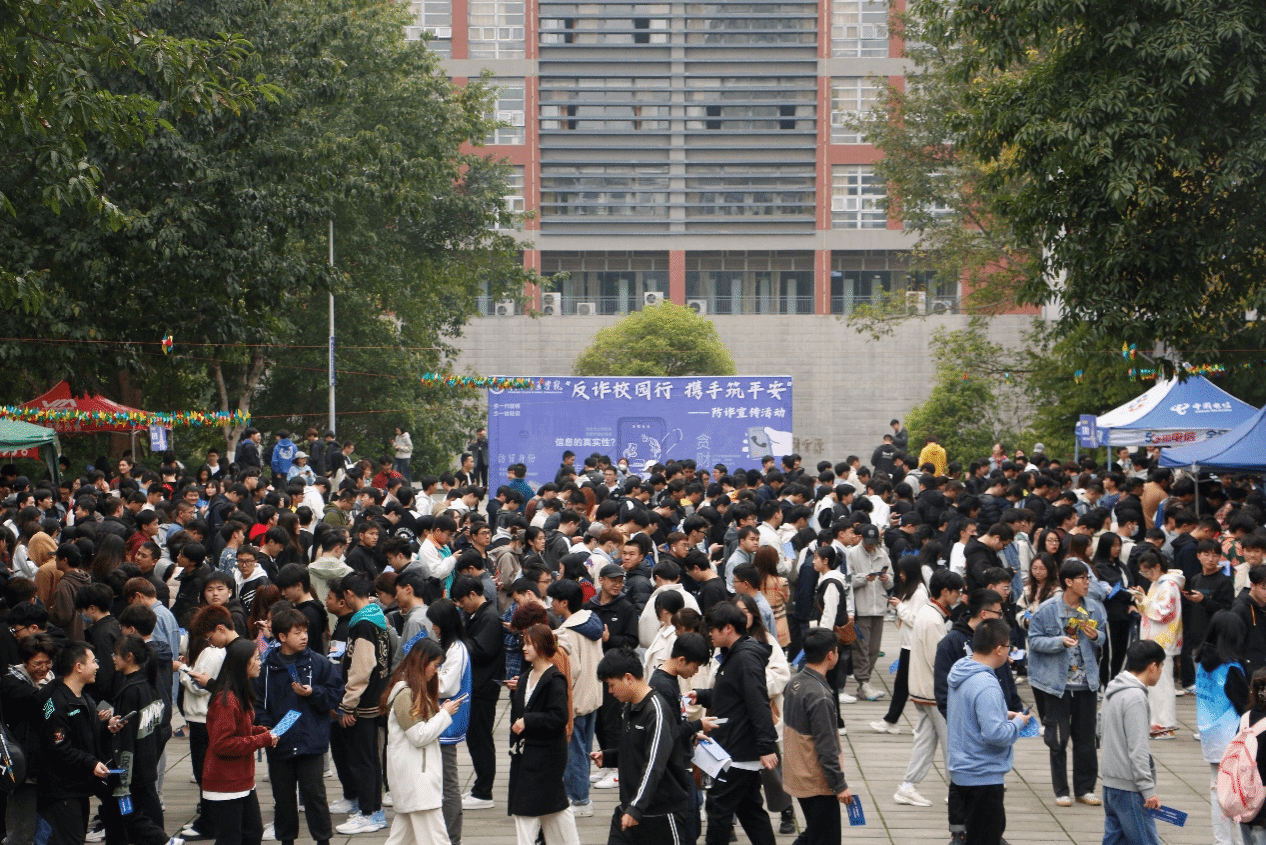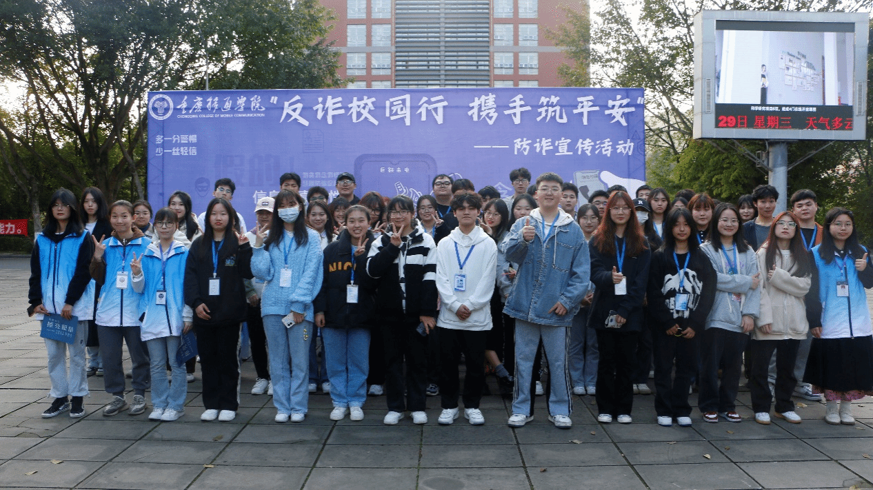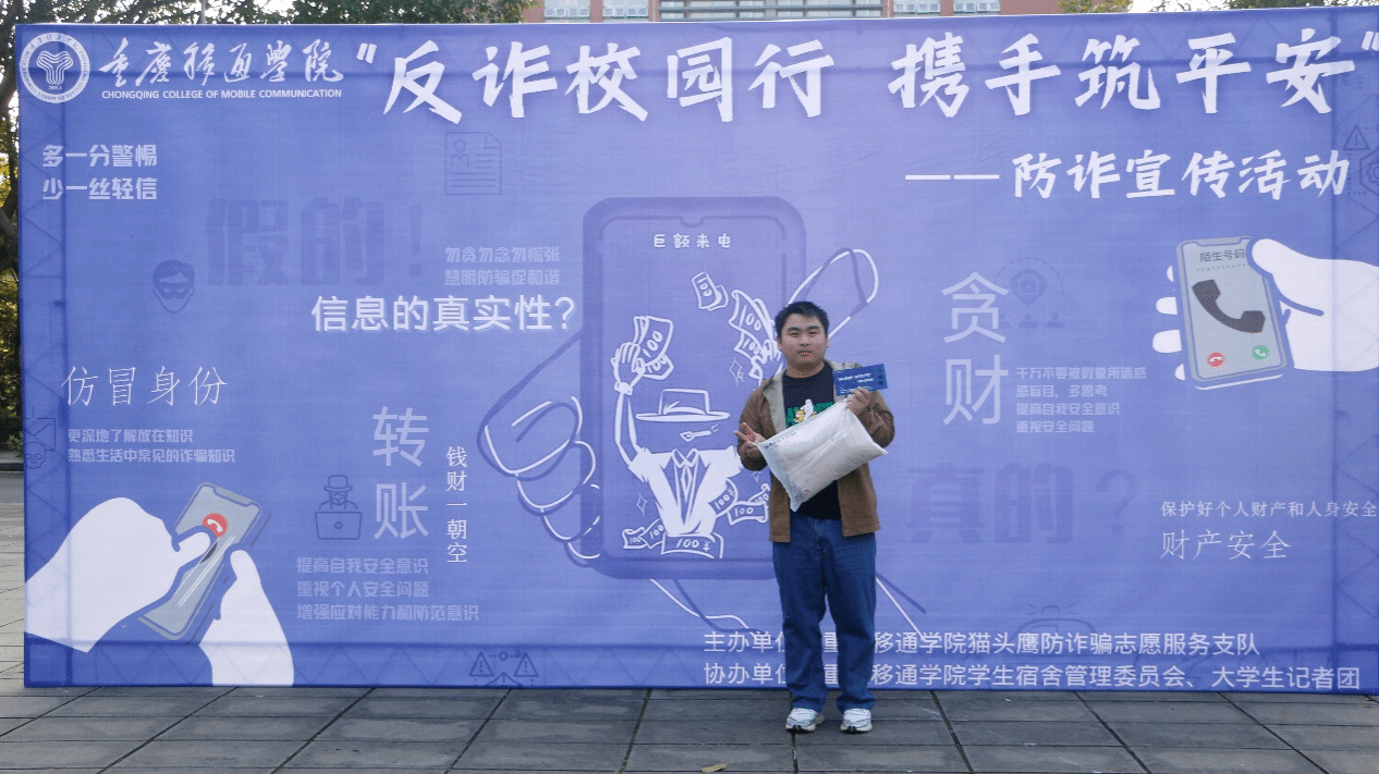为进一步提升加强在校同学的防诈意识,为同学们讲解最新的诈骗形式,引起师生重视,创造无诈、和谐的校园环境。3月29日下午,重庆移通学院“猫头鹰”防诈骗志愿服务支队、重庆移通学院学生宿舍管理委员会、大学生记者团联合在我校黄桷树广场举办“反诈校园行,携手筑平安”防诈宣传活动,现场近千余人次参与。
