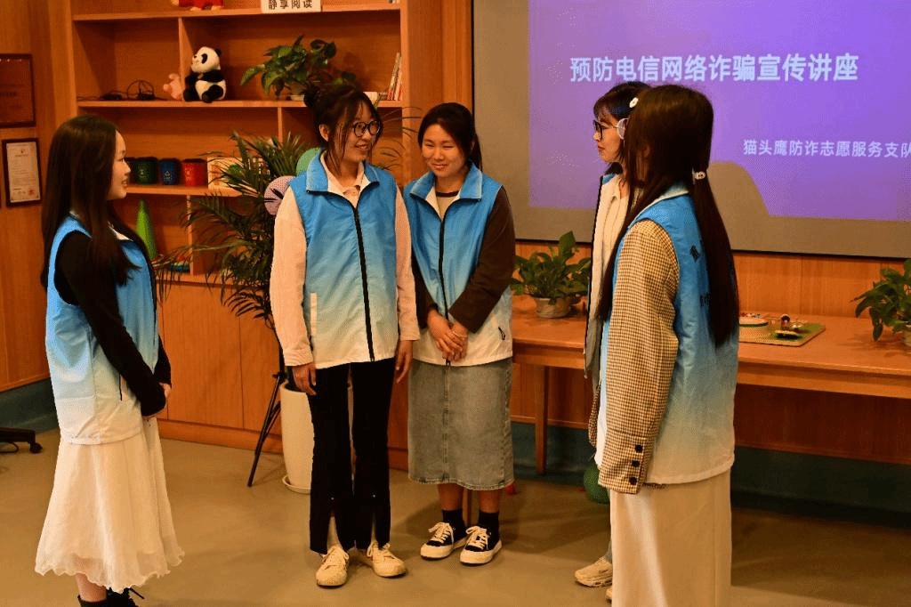 三月,唤醒了春天的梦,迎来了繁花似锦的季节,趁着春光明媚出门踏青,莫负春日好时光,远景学院2021级03团支部反诈宣传也与春日同行。春日出行,守护好你的“钱袋子”。老人的年纪越来越大,担心的事情也越来越多。渴望健康,害怕疾病,于是他们把保健品当作包治百病的神药。认知功能减退,判断能力下降,于是他们被花言巧语、日益更新的骗术所迷惑。缺乏关爱,寂寞孤独,于是他们陷入陌生人递过来“关爱”的橄榄枝。随着打击防范力度的不断加大,电信诈骗团伙的手段和套路也发生了改变,但是老年群体的防骗意识却未与时俱进。为了进一步加强反诈宣传力度,切实提高合川人民对电信诈骗的识别和应对能力,远景学院2021级03团支部于2023年3月15日下午两点,在团支书罗雨珩的带领下与“猫头鹰”防诈骗志愿服务支队、“馨小青”助残青年志愿服务分队一同前往合川区百龄帮合阳城街道养老服务中心和步步高广场隆重举行了防诈骗宣讲活动。