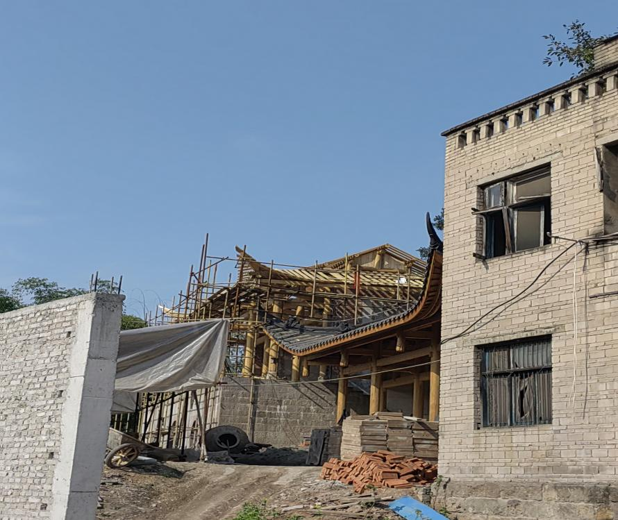 后来听说后山上又继续在修建新的道观,大家都十分激动,迫不及待的想去看看。透过房子的一角,同学们看到了新建的道观,造型十分气派,让人心生敬畏。新的道观又会载着新的期许和盼望迎接属于它的光辉岁月。