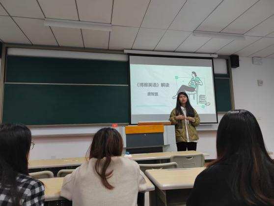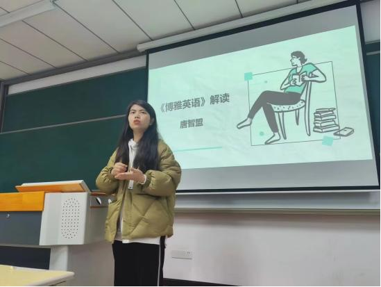 为帮助2021级同学了解学院特色通识课程体系,唐智盟老师为2021级学生带来《博雅英语》选课解读。《博雅英语》主打跨文化英语,以学生为主,打造趣味课堂,让学生在愉快的氛围下了解各国文化,增长见识,在讲解后解答了同学们对于博雅英语课程相关的疑惑。除此以外,唐老师提醒大家做好四级考试的准备,为顺利通过等级考试做好充足准备。