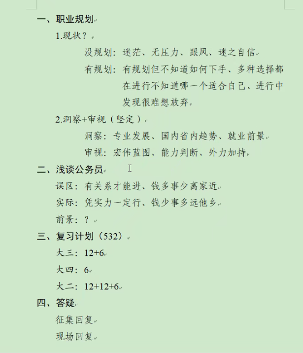 通过同学们地提问,姜学长热情回答关于“特岗”“三支一扶”“西部计划”等的相关问题,着重为我们讲解了关于申论的解题技巧,使考公变得不那么遥不可及。