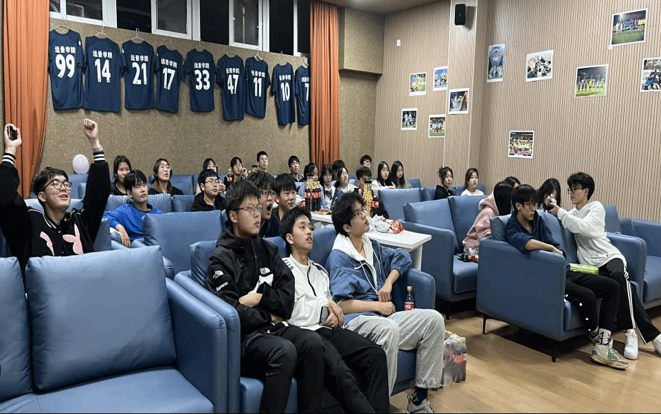 “比赛有终点,但热爱没有。”为积极响应“加快建设体育强国”号召,汲取奋进力量,11月28日晚,在远景学院体育协会的组织下,远景书院影音室为热爱足球的远景球迷敞开“怀抱”,搭建师生“足球共鸣”交流平台。球场上局势“风起云涌”,球场下球迷“激情澎湃”,分边挑坐,趣味游戏、有奖竞答,同学们深切感受绿茵场上的体育魅力,共享热血沸腾的足球盛宴。