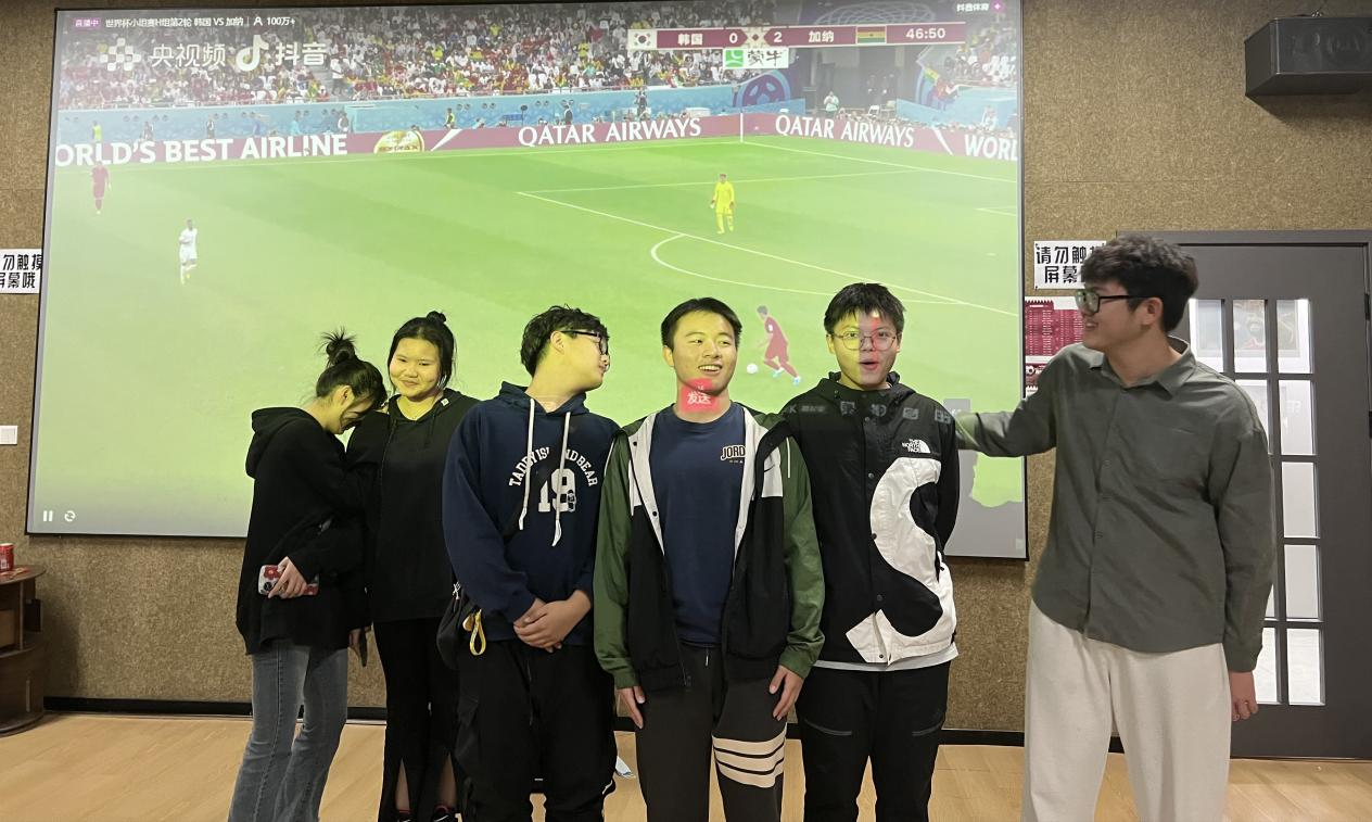 活动伊始,同学们综合兴趣、实力等内在动力与外在因素,根据支持球队选择落座,一场智力的较量就此展开。左边的同学为韩国队加油助威,右边的同学为加纳队摇旗呐喊,在加纳队“杀入”禁区时,同学们激情洋溢,挥舞着激动的双手。“回防回防”“边路进攻”“漂亮,好球”现场氛围紧张而愉悦,所有的目光聚向荧幕,不约而同的默契,此起彼伏的阵阵助威,凸显了远景学子的青春与活力。