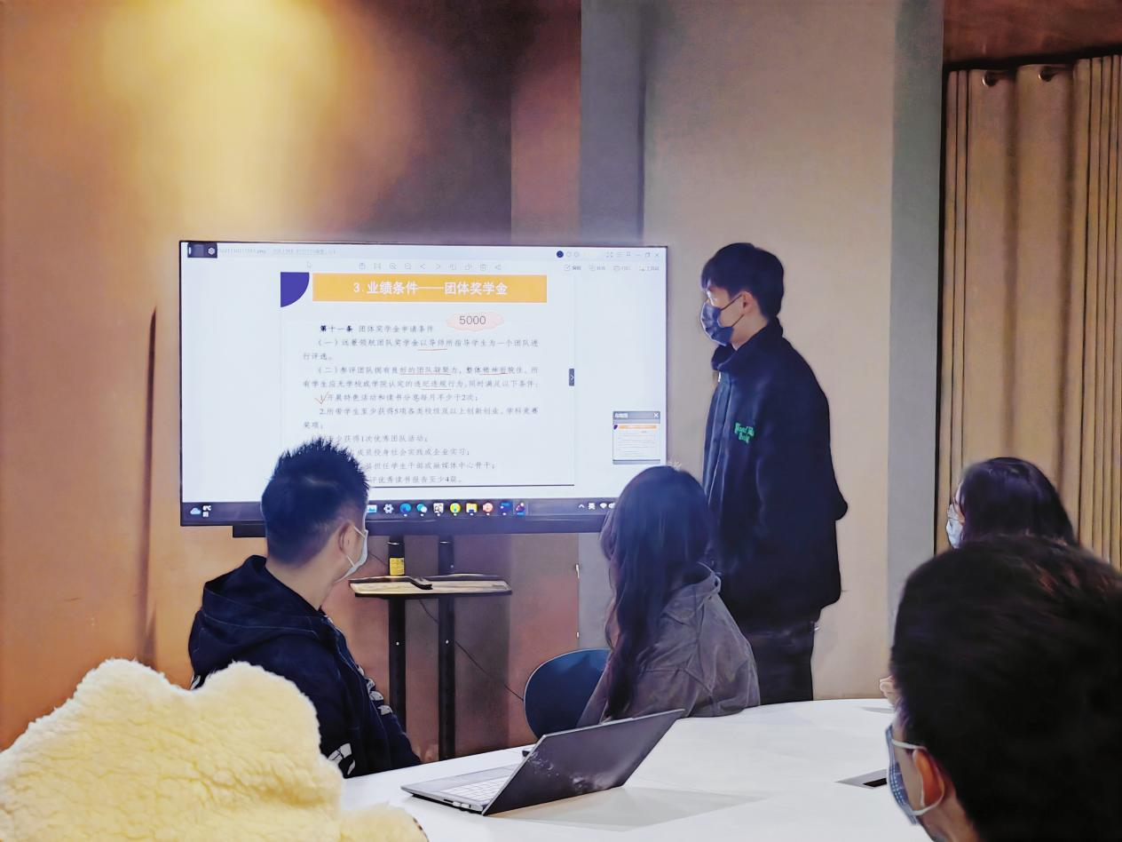 在骆施霖学长整个讲解的过程中,李老师也给大家总结了关键信息,并说明团体奖学金的设置是在激励学生努力上进的同时,也提升人的团队意识、提升团队的凝聚力,让众人拧成一股绳,从而使整个团队得到试炼与提升。在个人奖学金方面,学长讲的较为详细。他提到,整个奖项分为三个档,每个档位的金额是逐层递进的,其分别为远景行知奖学金、远景博雅奖学金与远景星晖奖学金。对此,李晨晓导师对学生们抱有很高的期望,并在最后为我们详细讲解了其中需要满足的条件,给予了同学们很大的激励。