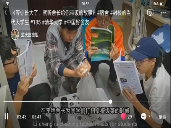 与寝室合照不同,部分寝室以经典电影为甄选进行翻拍,如:《唐人街探案》《薛平贵与王宝钏》《泰坦尼克号》等;也有网上热门视频的模仿,如:《大力白雪》《好男人都去哪了》《算命先生》等,同学们在原视频的基础上加添了一份独属于自己寝室的韵味与风趣。其中,《唐人街探案》《薛平贵与王宝钏》创意视频受到了同学们的一致青睐。别具一格的构思、标新立异的拍摄、精益求精的剪辑充分锻炼了同学们的想象力与创造力,增强了寝室的集体荣誉感与归属感。