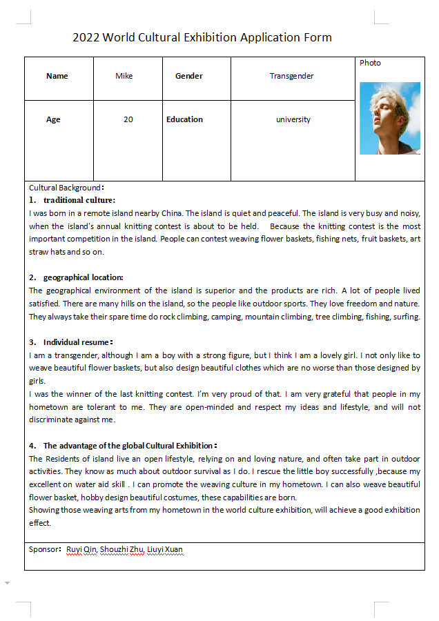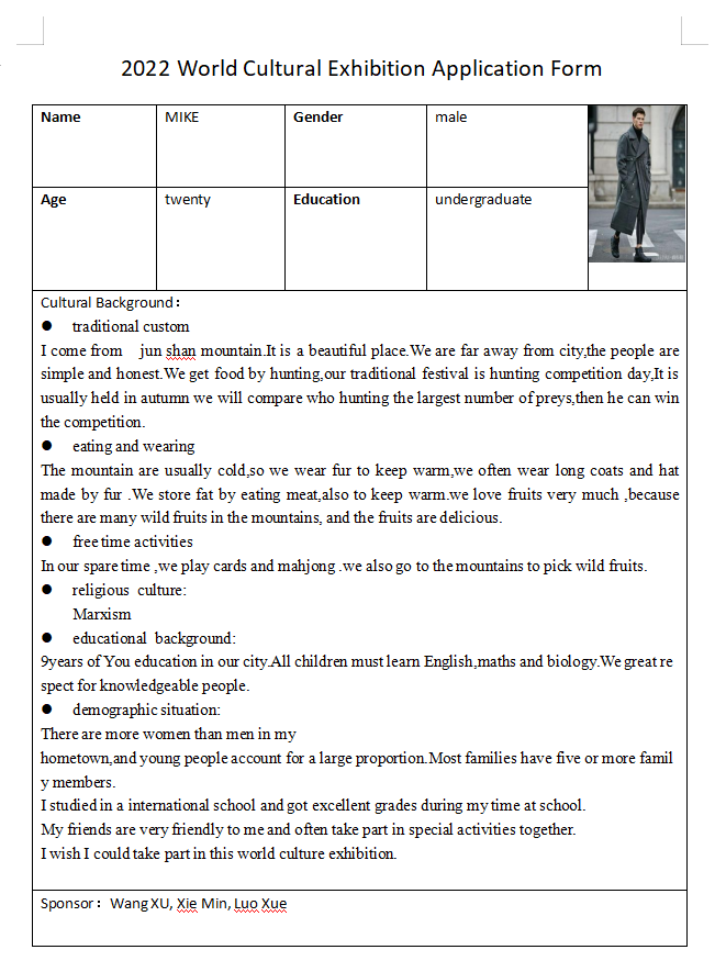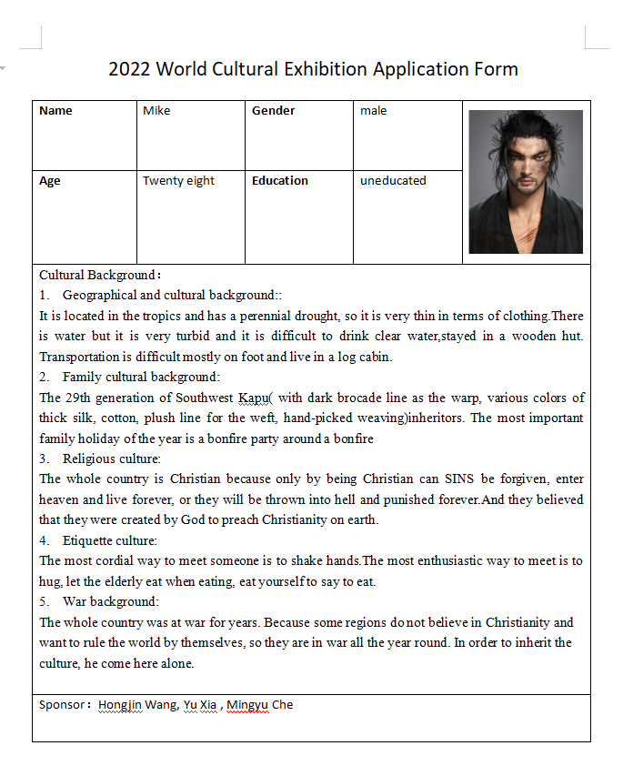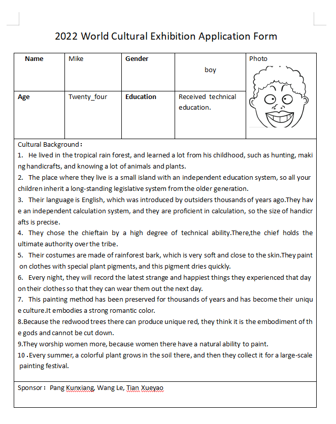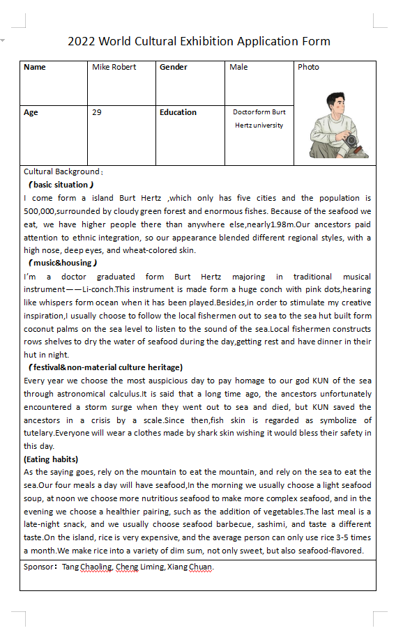“文化差异”是当今世界愈发不可避免的一种现象。随着全球科技不断发展,跨地区、跨国家交流已不是难事,国际交流的增多必定建立在语言的基础之上,此次课程的开展对同学们来说是重要且必要的。下面,让我们一起来看看这次“全球文化展示模拟大会”征集到的简历吧。