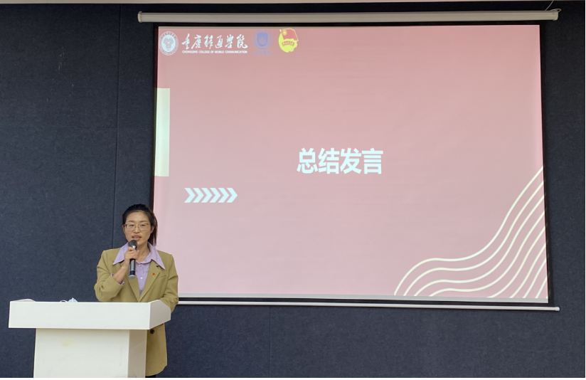 大会议程最后一项,远景学院学工办主任郭淼老师总结发言。“青年强则国家强,当代青年生逢其时,施展才干的舞台无比广阔,实现梦想的前景无比光明”。郭老师讲到綦江校区远景学院初建阶段正是需要广大青年骨干力量携手同行的关键时刻,每一位远景人都肩负重任,希望大家深入学习、宣传、贯彻党的二十大会议精神,胸怀国家、心系远景、奉献团队,敢想敢做、善作善成、传递正能量,在大是大非面前做守得住、站得出、敢发声、谦虚谨慎、阳光靠谱的青春同路人!最后郭老师呼吁广大同学应响应本期培训主题“清澈的爱只为中国,火红的心永远向党”,不忘初心,永远跟党走。
