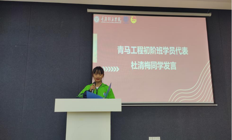 大会议程第三项,由初阶班学员代表杜清梅同学发言。她分享自己对于“青马工程”的看法,激起了同学们的干劲与激情。在场的同学深受鼓舞,并希望通过此次培训在思想有提升,工作有干劲,继续振奋精神,开拓创新,在自己的工作岗位上做出更大的贡献,打造出一支“乐于奉献,敢于创造,追求卓越,团结友爱,和谐高效”的学生组织队伍。