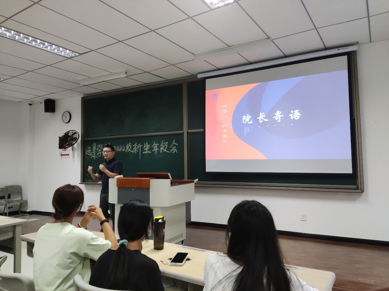 远景学院学工副院长李军向进入远景学院的新同学们表达了衷心的祝福,介绍了远景学院的各类资助奖励政策,向同学们详细介绍了远景学院的优势。李院长最后也表达了对同学们未来的期望,相信这会成为远景学院2022级学子前进的动力。
