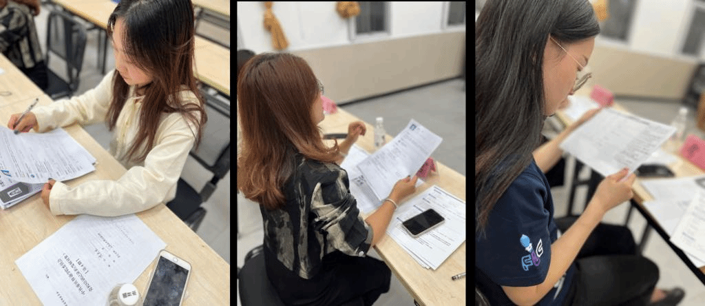 团辅结束后,12名面试同学进入候考室,依次抽取相应的号码卡牌,候考期间观看关于结构化面试的相关视频讲解。在紧张气氛的烘托下,第一位考生进入了面试间,根据提供的考题做笔记、理思路,并进行一一回答。在整体面试过程中,同学们表现不一,有的沉着冷静、有的急张拘诸……同学们在时间的掌控上、语速的快慢上也尽显不同,让刚刚步入大三的同学们有了人生第一次面试体验。