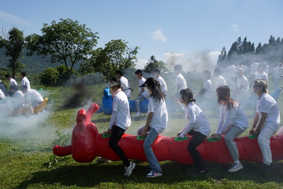 千人同心,则得千人之力万人异心,则无一人之用。在重庆移通学院淬炼基地专业教练的带领下,一百余人分别以“小汪汪队”“振旗八队”、“青青草原队”等八支队伍组成。他们或是用“做大做强,共创辉煌”等口号向山间宣誓,或是以《孤勇者》等战歌向他人“宣战”。正青春,正年少,正值六月。