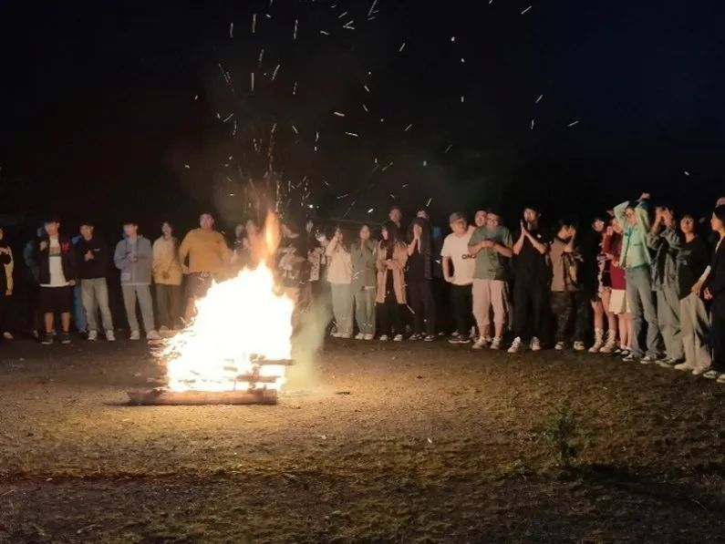 夜间凉意来临,篝火旁的师生们依旧如六月流火般热忱,他们有以寝室为单位倾情献唱《最炫民族风》的425寝室,有自发带动周围同学带燃全场氛围的邓力萌同学......学工副院长李军在篝火晚会中提到,希望大家通过远景荣誉生训练营提升团队凝聚力,体验不一样的大学生活,在后面即将进行的大咖授课、实地调研中积极参与,提升自我,给自己留下一段难忘的大学生活。“环绕篝火而舞,我看到的是青春的模样;欢声笑语载歌载舞,是你们友谊的痕迹。这是一次游学活动,更是一次同学间交流促进情意的机会,我们尽情享受就好。”一段包围成圈的篝火舞蹈之后,2020级辅导员付老师就本次训练营活动提出寄语。而后,由付老师领唱一首《生日快乐》送给作为寿星的邓宇洁、郭明懿、王倩倩三位同学。