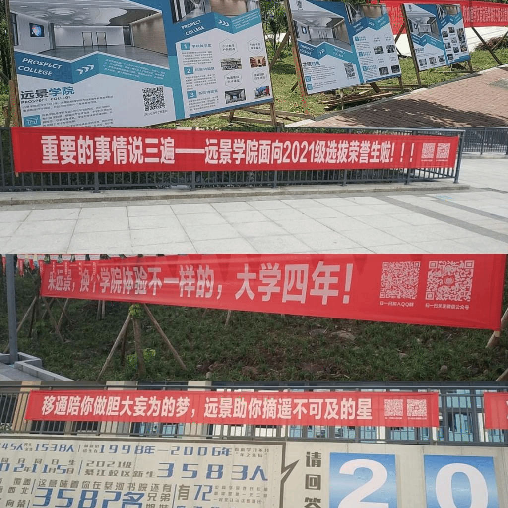 2022年远景学院将在重庆移通学院綦江校区落成,经过学院领导的整体策划,学校各部门的大力支持,远景学院2021级荣誉生选拔全面启动,因为今年受到疫情的影响,远景学院积极探索新的宣传模式,在学院全体教师的共同努力下,此次招生采用“校校”联动、线上线下同步结合的方式进行,对綦江校区的3000余名学生进行了广泛宣传。