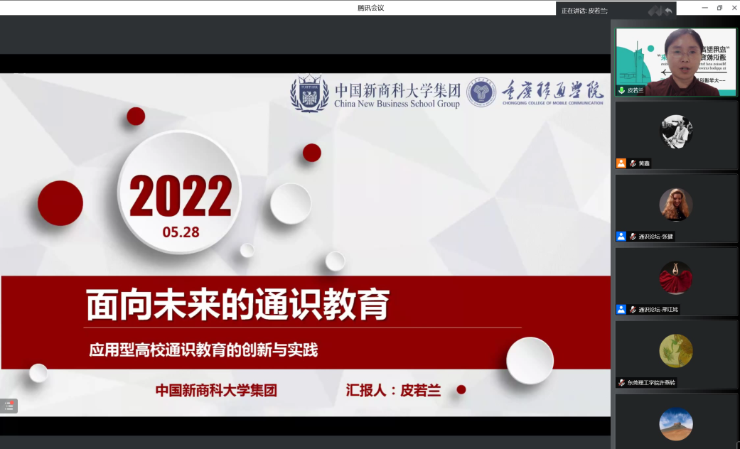 2022年5月27、28日,由大学通识教育联盟主办、联盟成员高校西安欧亚学院承办的“应用型高校专题论坛”顺利召开。中国新商科大学集团通识教育板块主管皮若兰、副主管陈春苗应邀参会,并在论坛中做主题发言。集团三校远景学院、通识教学部全体教师均以线上形式参与论坛。