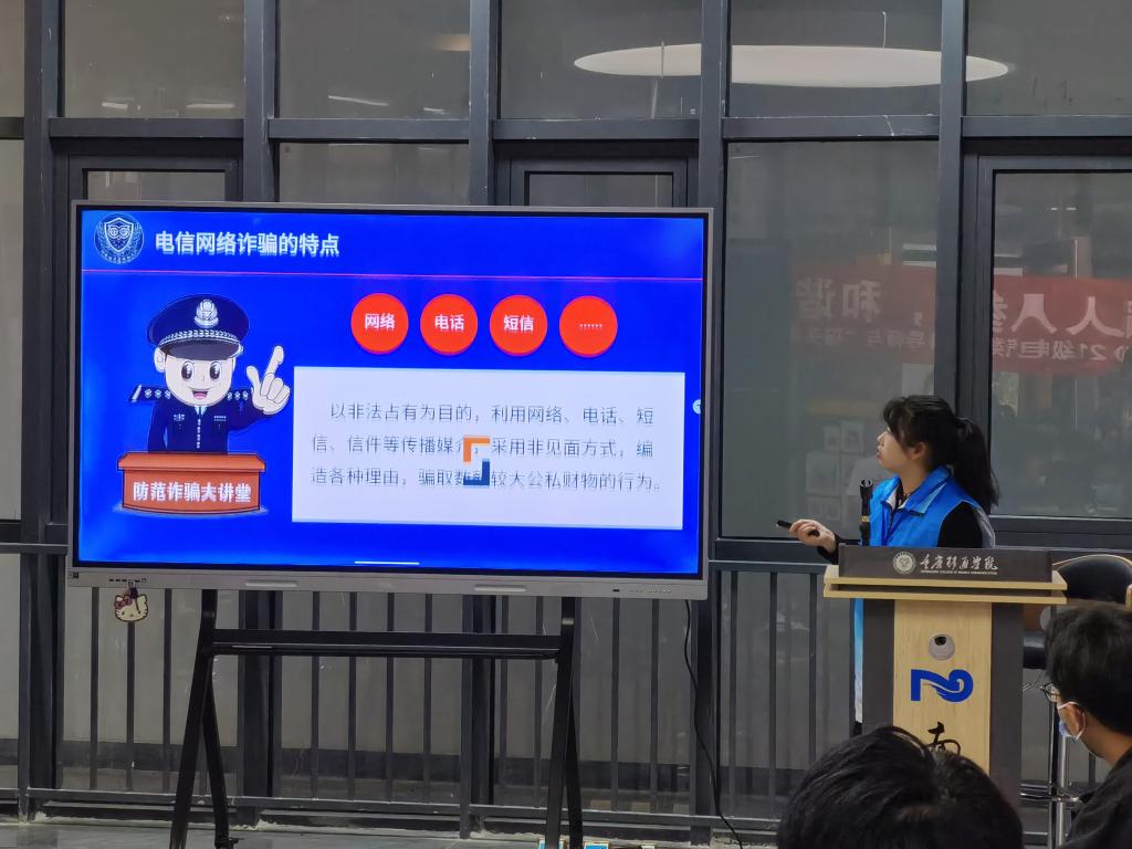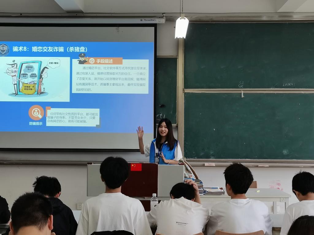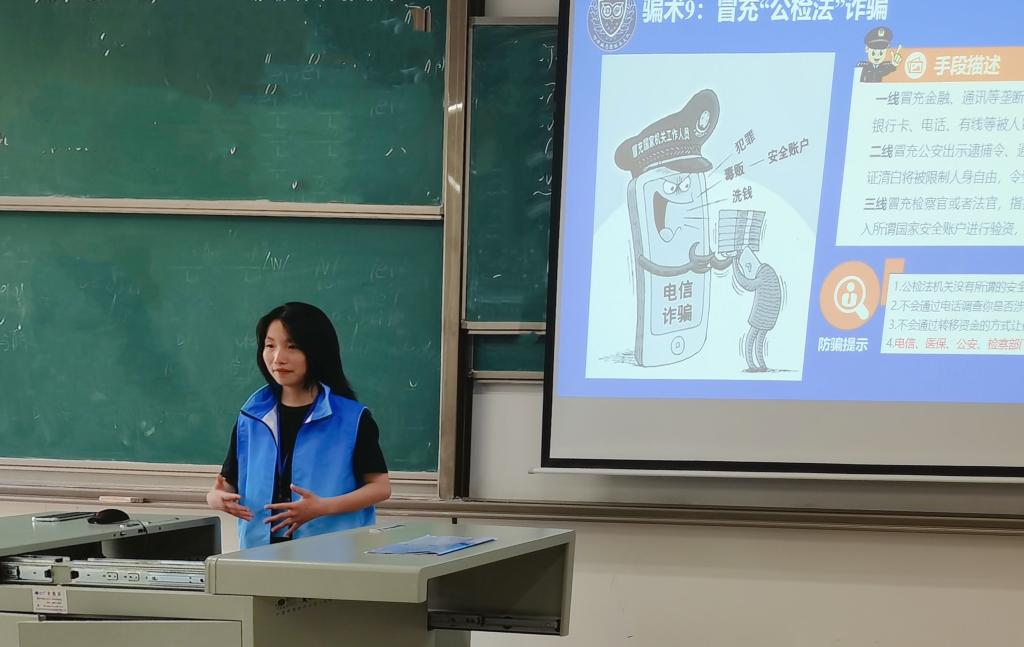为进一步增强在校学生的法制观念,提高反诈防骗自我保护意识和能力,做到全面预警防范,全力构筑“全校反诈”防线。4月,“猫头鹰”防诈志愿服务支队宣讲团通过反诈防骗宣讲进班团的形式为移通学子筑起了一道防骗长城,志愿者们走进班团宣讲共计28次,服务师生900余人。通过讲解网评刷单、网购退款、虚假网络购物及游戏、冒充“公检法”等九种常见的电信诈骗犯罪手段,让同学们认识到新型电信诈骗犯罪的严重危害性。