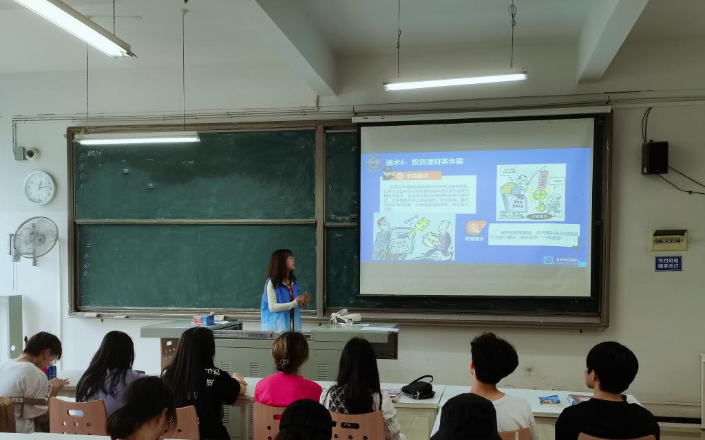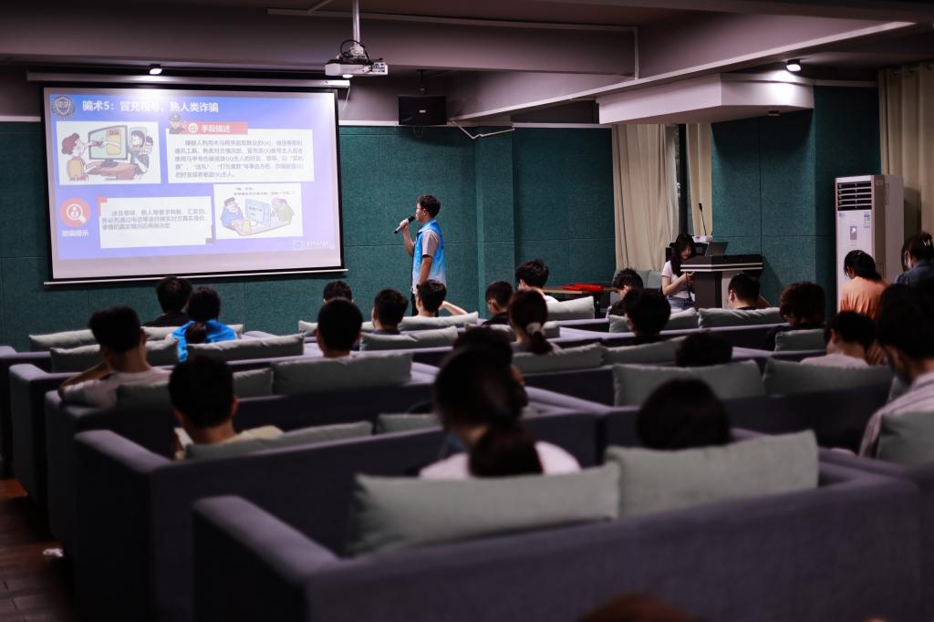 当站在讲台上,背后是泛着荧光屏幕的PPT,面向陌生的同学们,我或许一开始是紧张的,但心中总会有一种很奇妙的感觉。不断宣讲的过程中,我自己对电信防诈的理解也在不断加深,同时也为同学们敲响反诈的警钟和提升学生的防骗意识而感觉到开心。