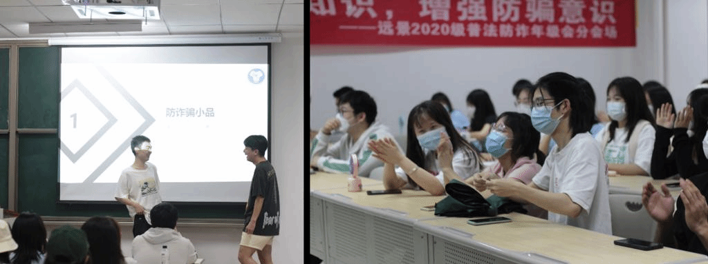 秉承“年级防诈骗,支部我先行”的理念,远景学院2020级05团支部作为‘防诈维权’特色团支部携“猫头鹰”防诈志愿服务支队、学校电影协会,于2022年4月22日晚上18:30在爱莲书院多功能影音室开展了“‘观影明骗局防诈在我心’——普及法律知识,增强防骗意识年级会开幕仪式”,让年级主要学生干部意识到防诈骗的重要性,进而辐射到基层团支部,为次日普法防诈主题年级会开启预热篇章。
